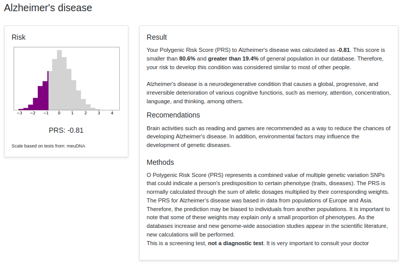 Calculamos o seu risco poligênico (PRS) para dezenas de condições genéticas, que é uma pontuação que mostra como seu perfil genético se encaixa no resto da população.